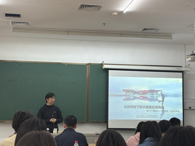 杨老师说,希望同学们可以通过此次专家分享,填补书本知识之外的行业认知和项目实践空白,为大家未来投身文旅行业、操盘文旅项目、践行高质量发展理念奠定坚实基础。希望同学们以此次课程为契机,进一步夯实自身专业认知,把握文旅人在存量时代与蓝色经济下的规划破局路径——既要脚踏实地,深耕运营管理、通晓行业法规,筑牢专业根基;也要仰望星空,勇于突破创新、敢于跨界融合,挖掘文旅产业的多元价值。